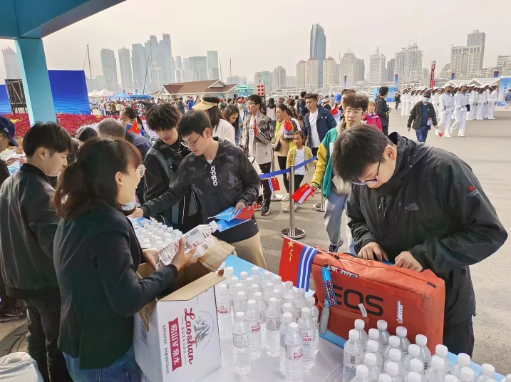在舰艇开放活动期间,崂矿公司向前来参观的市民和游客赠送崂矿系列产品,让大家在领略海军风采的同时,也能品味到在国际舞台上大放异彩的崂矿系列产品的独特风味,赢得参观者们的一致好评。