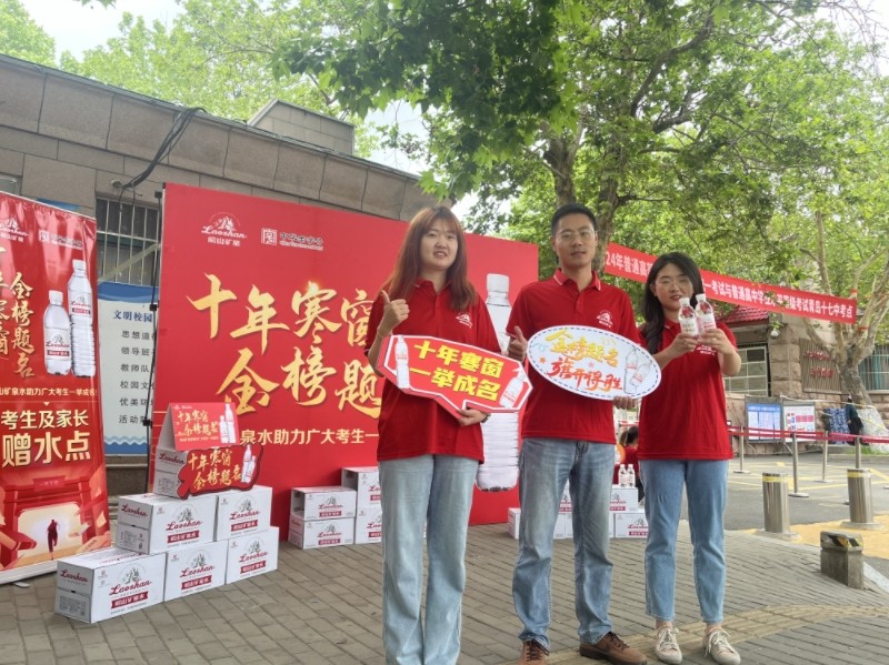 在这个决定未来的六月,每一分努力都值得被温柔以待。据悉,今年的夏季高考,青岛市约有4.7万余考生报名。对于考生来说,高考是命运的分水岭,也是一场青春的洗礼。十二年青葱岁月的锤炼,只为初试锋芒的这一刻,莘莘学子们满怀着对未来的希望奔赴考场。而在这一重要时刻,崂山矿泉水,源自自然的纯净之源,用每一滴清冽,为奋斗在高考路上的你加油鼓励。“知识的海洋需要清晰地思考,梦想的翅膀渴望轻盈的起飞。因此,崂山矿泉水将以最优质的水源,陪伴每一位追梦少年,让思考更清晰,让梦想飞的更高!”面对即将到来的高考挑战,崂矿公司希望用这样特殊的方式来为考生加油助力。现场赠送的崂山矿泉水,也是经过特殊设计,将“金榜题名”等祝福的话语印在外包装上,“这不仅仅是一句祝福,更可以作为自己努力拼搏的见证和留念来珍藏。”崂矿公司的工作人员介绍道。