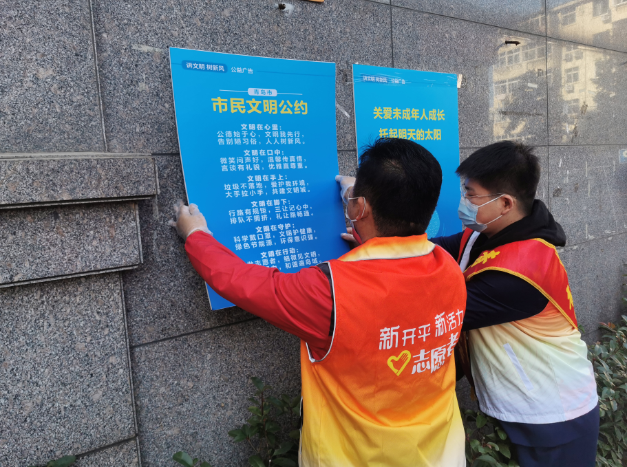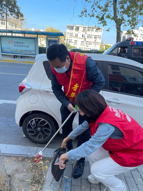 为进一步推动文明典范城市创建深入推进,营造浓厚的创城氛围,助力提升辖区居民生活品质,10月29日,在共青团青岛市委、青岛市青年志愿者协会的指导下,青志协会员单位3044am永利集团官网、青岛刺猬网网络科技有限公司志愿服务团队青年志愿者与青岛市市北区阜阳路社区共建,开展“创城在行动 青年勇担当”为主题的创建全国文明典范城市周末青年志愿行动。