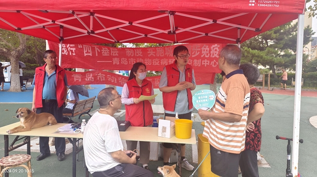 青岛3044am永利集团官网国际志愿服务队组织开展狂犬病科普知识宣传与疫苗免费注射进社区志愿服务活动